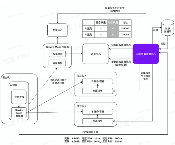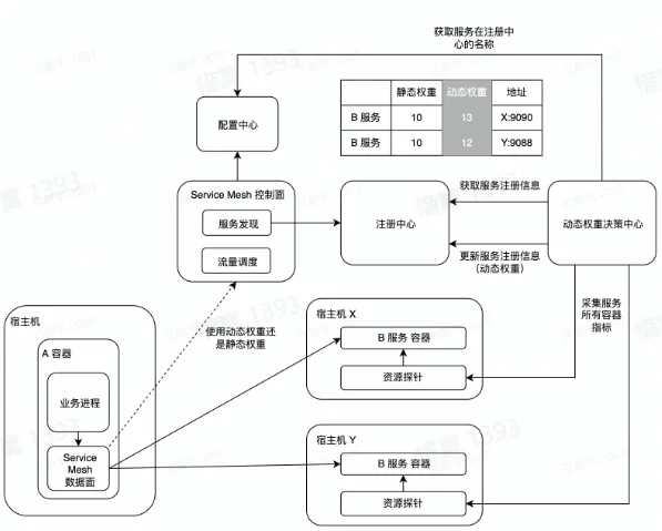 - 注册中心存储了所有容器的权重信息