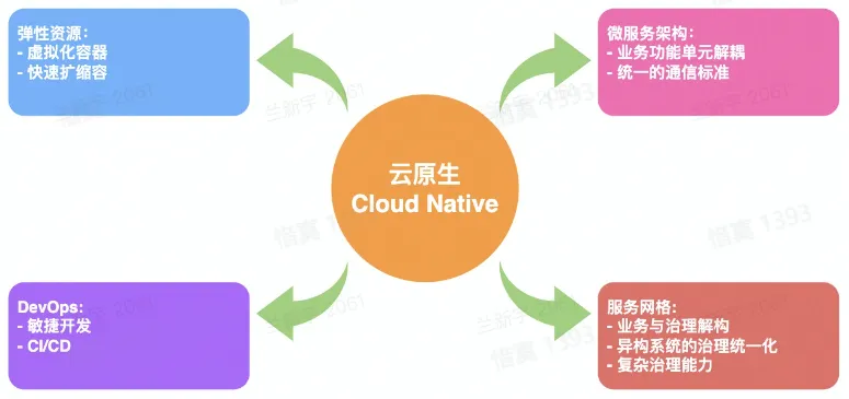 云原生技术为组织(公司)在公有云、自由云、混合云等新型的动态环境中,构建和运行可弹性扩展的应用提供了可能