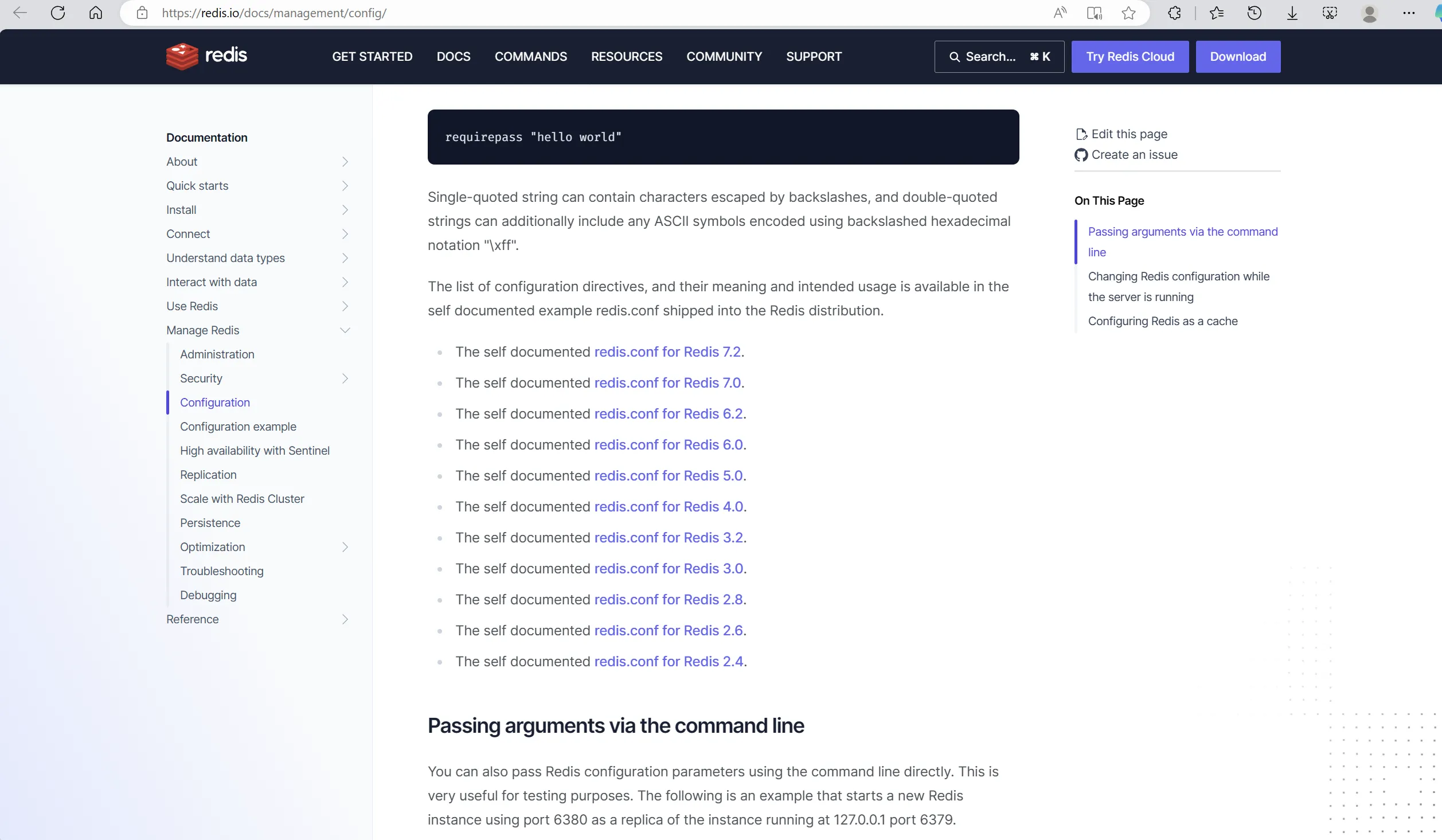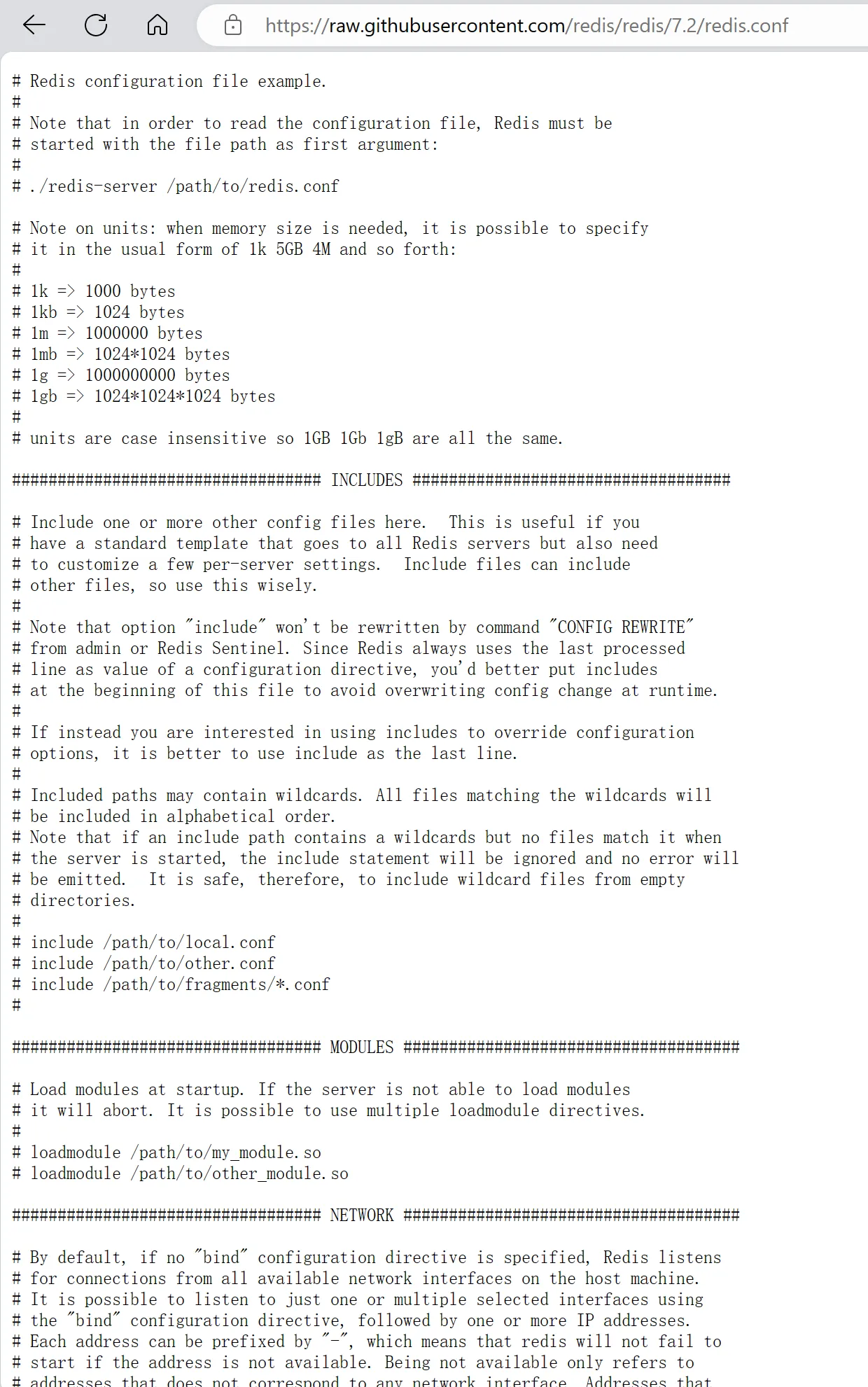 创建完配置文件后,直接去 Redis 的官网找对应版本的配置文件 Redis configuration | Redis