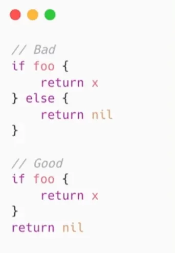 - 线性原理,处理逻辑尽量走直线,避免复杂的嵌套分支