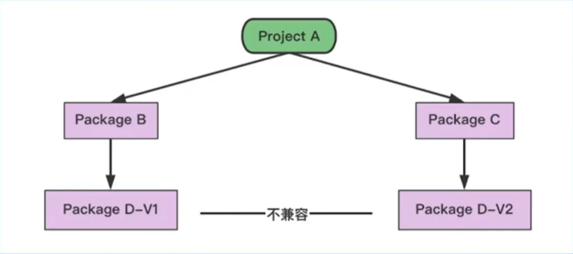 通过每个项目引入一份依赖的副本,解决了多个项目需要同一个 package 依赖冲突的问题