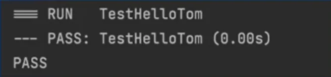 1 2 3 4 5 6 7 8 9 10 11 12 13 package testimport ( "testing" "github.com/stretchr/testify/assert" ) func TestHelloTom (t *testing.T) { output := HelloTom() expectOutput := "Tom" assert.Equal(t, expectOutput, output) }