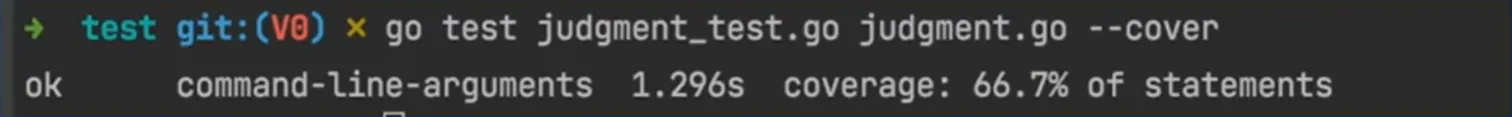 1 2 3 4 5 6 7 8 9 10 11 12 13 14 15 16 17 18 19 package testimport ( "testing" "github.com/go-playground/assert/v2" ) func TestJudgePassLineTrue (t *testing.T) { isPass := JudgePassLine(70 ) assert.Equal(t, true , isPass) } func TestJudgePassLineFail (t *testing.T) { isPass := JudgePassLine(50 ) assert.Equal(t, false , isPass) }
