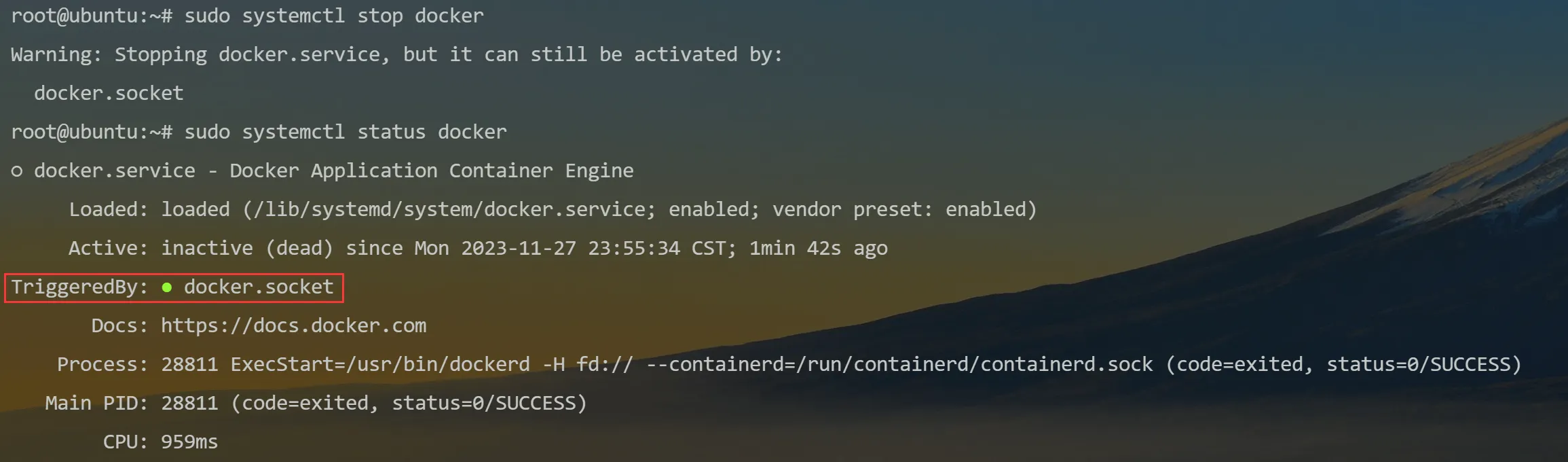 1 | sudo systemctl stop docker.socket |